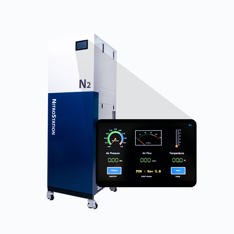 NitroStation 질소발생기는 질소 소모량이 많은 질소 농축기를 위해 설계되었습니다. 스크롤 컴프레서와 Hollow Fiber 멤브레인을 채택하여 분당 200리터의 안정적인 질소를 공급합니다. 국내 기술로 제작되었기 때문에 이제 합리적인 가격으로 고성능 질소발생기를 사용할 수 있습니다.